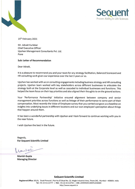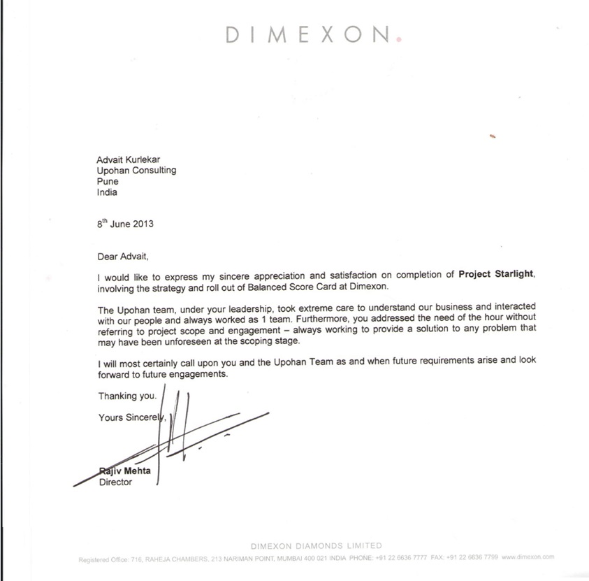 I was particularly impressed with 's ability to understand our organization's work culture and working closely with the management team in coming up with a framework that ensured complete buy-in from all, which in my opinion, is highly critical to the success of any project. Over the years, this association has turned into such a healthy relationship that your name springs first to our mind whenever we are looking out for external assistance for any strategic initiative that we want to launch. We look forward to maintaining this relationship that benefits us mutually.